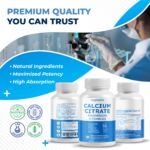 Calcium Citrate Magnesium Vitamin D3 1000IU – Support Healthy Bones, Nerve & Muscle, Absorption – Made and Tested in The USA